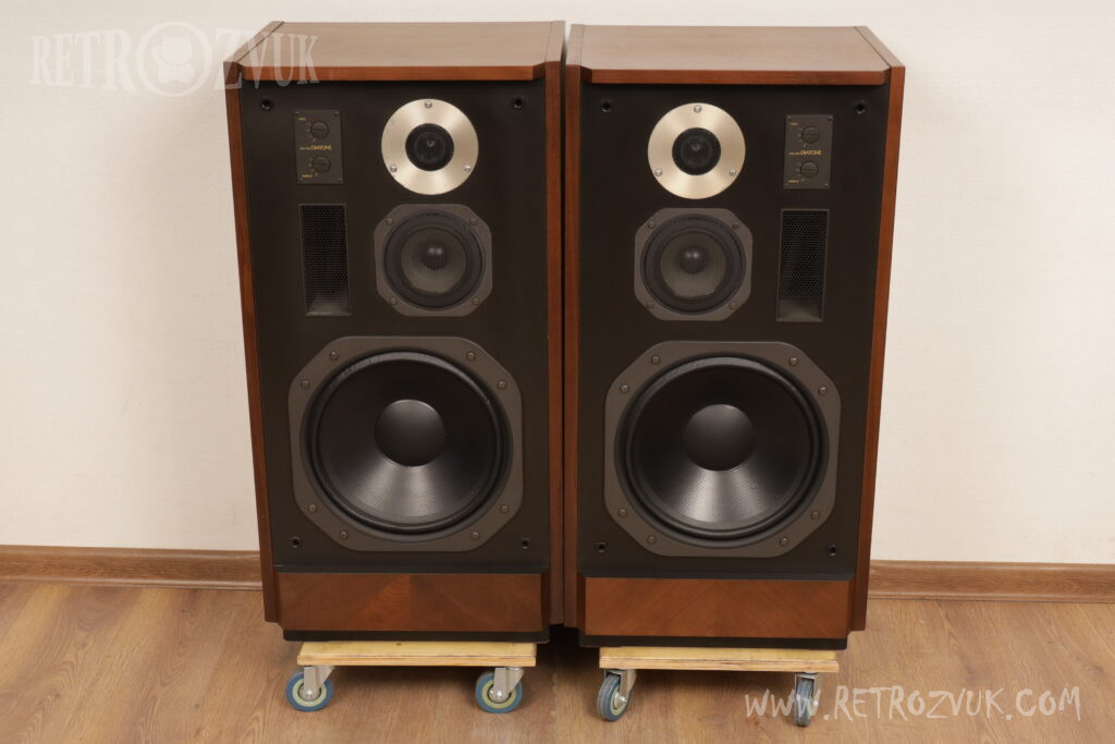 Напольная акустическая система с фазоинвертором. Для воспроизведения низких частот используется конусный динамик 33см с сотовой структурой. Сотовый заполнитель – тонкая алюминиевая фольга, при изготовлении, использовался пластик и стеклопластик, таким образом получается, что воздушный слой занимает 90% от общего объема диафрагмы при этом имеем высокую прочность и небольшой вес. Магнитная цепь низкого искажения, такая же цепь использовалась в DS-35B.
