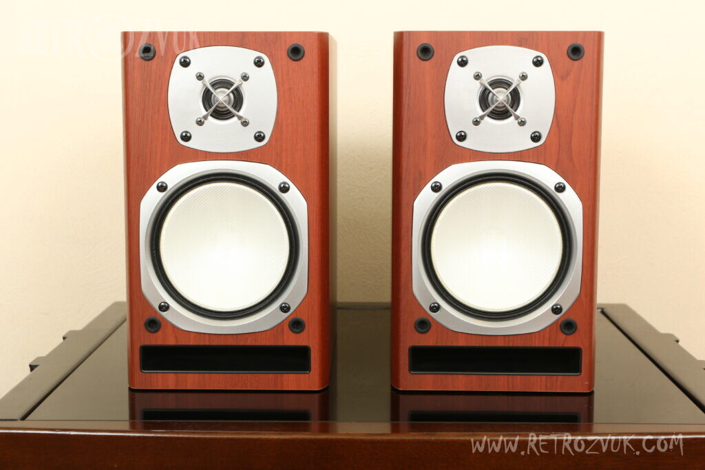 Динамики расположены вертикально по центру. Под ними — щелевой фазоинвертор. Другие особенности: акустической системы: