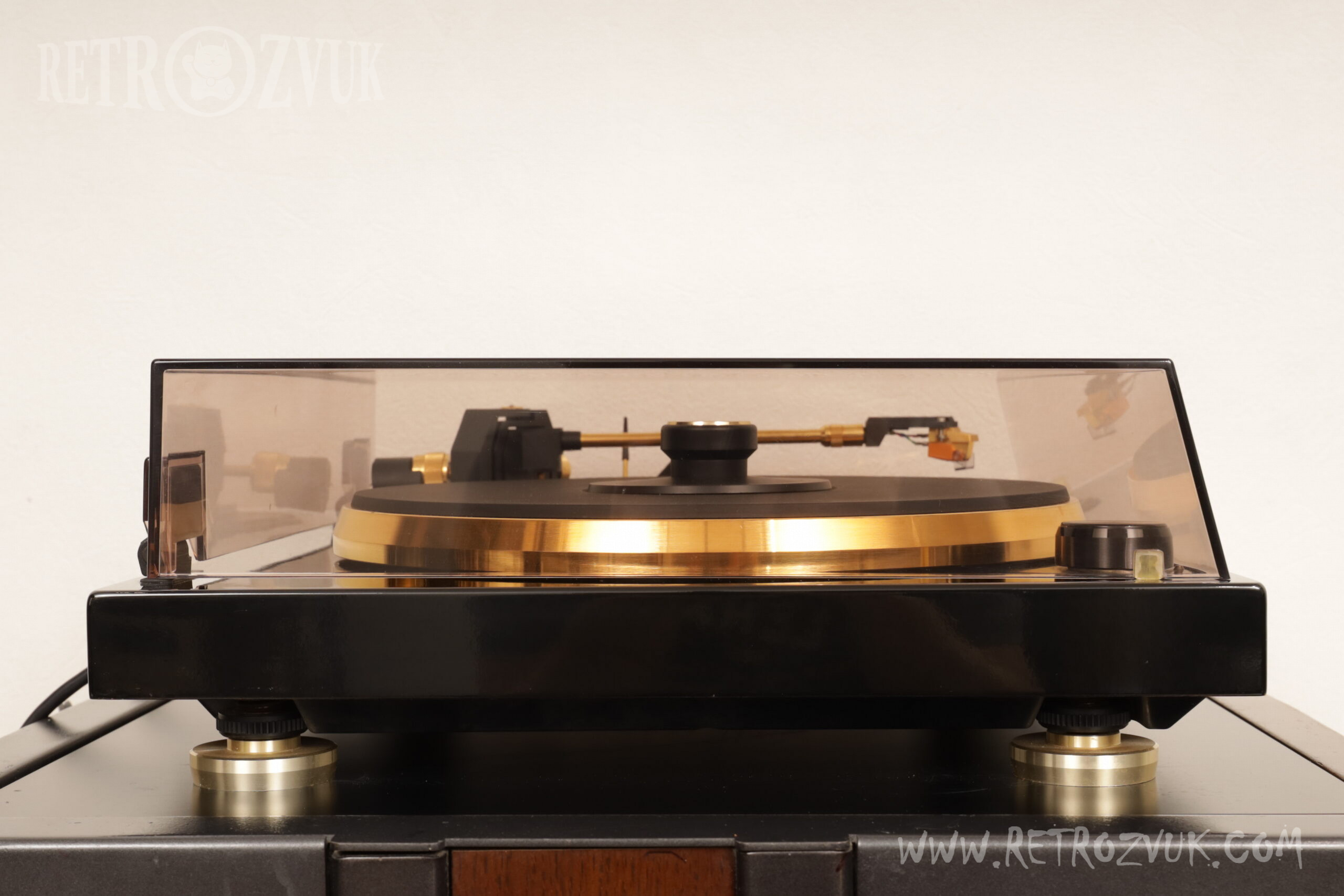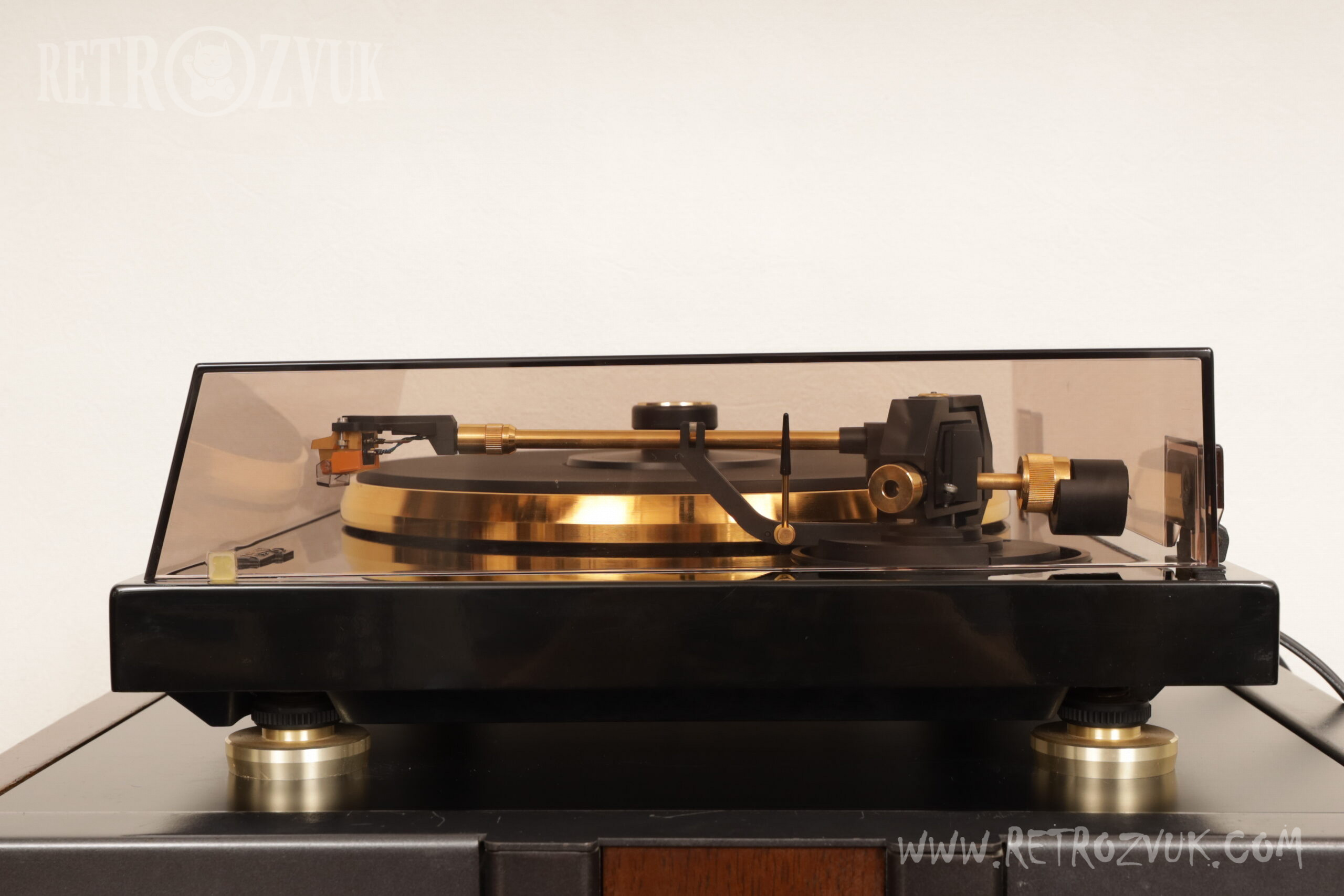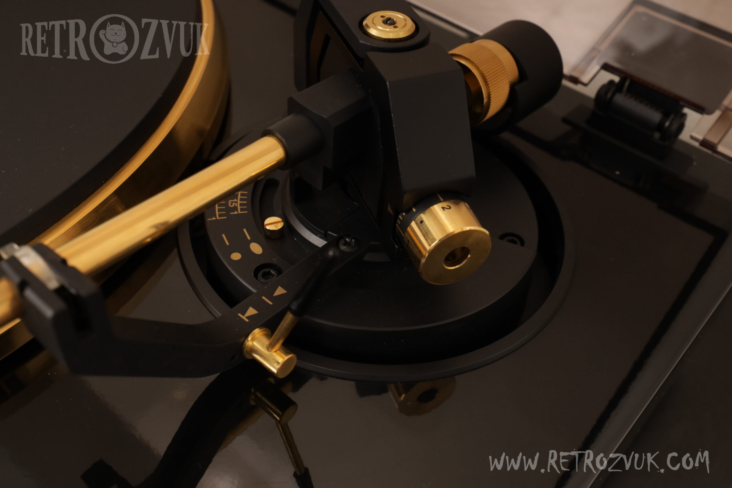 В узле тонарма применен тонарм на гироскопическом кардановом подвесе (Gyroscope Gimbal Tonearm).