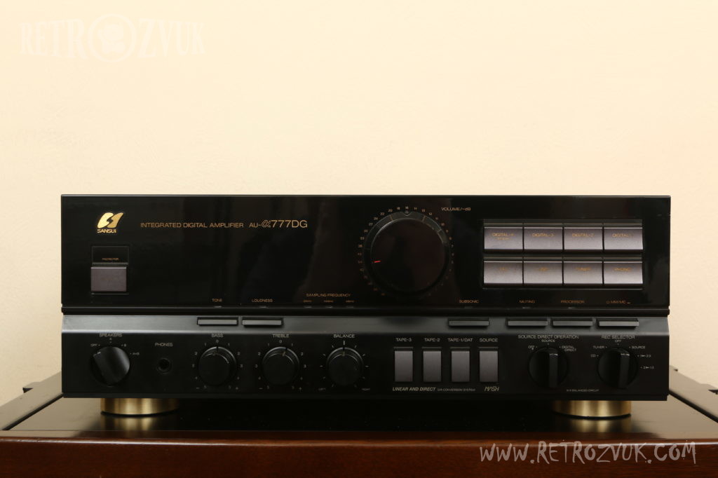Для усилителя AU-a777DG использована сбалансированная схема α-X, для нейтрализации шумов и искажений. Цифровая и аналоговая части четко разделены, блок питания экранирован для минимизации помех, создаваемых им.