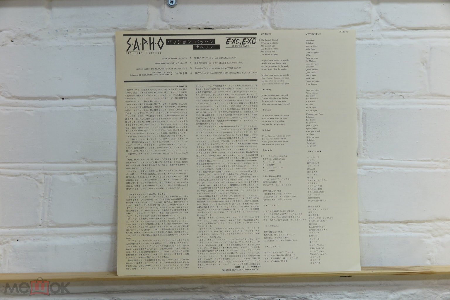 Sapho – Passions, Passons Состояние: EX+/NM(конверт/пластинка) Артикул: P-13181 Формат: Пластинки, LP, Album Страна: Japan Дата релиза: 1985 Жанр: Electronic, Rock